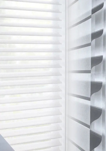 Shangri-La Blinds are personalized textiles featuring a unique design that seamlessly connects the day and night fabric components. When the entire blind is lowered, it unveils a transparent mesh at the end, effectively integrating both day and night functionalities within a single blind.